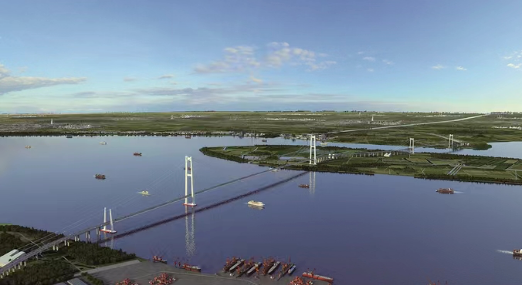 江蘇張靖皋長(zhǎng)江大橋南航道橋主跨2300米,北航道橋主跨1208米,將創(chuàng)造世界最大跨徑懸索橋、最高懸索橋索塔等六項(xiàng)“世界之最”以及首創(chuàng)超大型自行走裝配式索鞍等六個(gè)“世界首創(chuàng)”。張靖皋長(zhǎng)江大橋位于江陰長(zhǎng)江大橋下游約28公里,滬蘇通長(zhǎng)江大橋上游約16公里,連接蘇州、泰州和南通三市,是“十四五”期間國(guó)家重點(diǎn)推進(jìn)的過(guò)江通道項(xiàng)目。大橋建成通車后,將對(duì)落實(shí)長(zhǎng)三角區(qū)域一體化發(fā)展和長(zhǎng)江經(jīng)濟(jì)帶發(fā)展國(guó)家戰(zhàn)略,優(yōu)化長(zhǎng)江干線過(guò)江通道布局,完善區(qū)域路網(wǎng)布局,促進(jìn)跨江融合發(fā)展等帶來(lái)直接影響。
