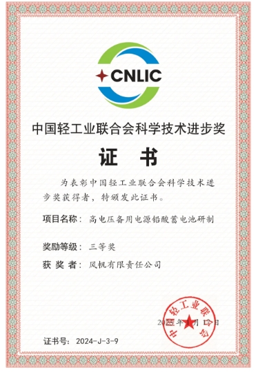 近日,中國輕工業聯合會五屆五次理事會、中華全國手工業合作總社八屆五次理事會在北京召開。會議頒發了2024年度中國輕工聯科學技術獎,中船集團旗下中國動力子公司風帆公司《高電壓備用電源鉛酸蓄電池研制》項目獲得三等獎,標志著公司在行業領域技術創新能力和產業化價值再獲權威認可。