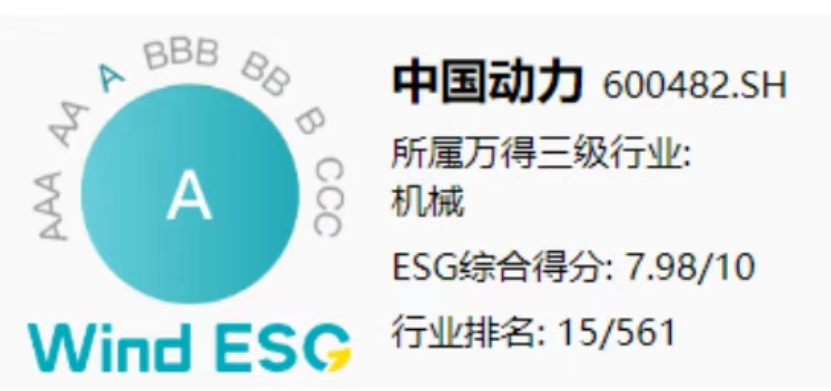 近日,知名權(quán)威ESG評級機(jī)構(gòu)萬得(Wind)更新了中船集團(tuán)旗下中國動力最新一期的ESG評級結(jié)果,中國動力憑借在ESG領(lǐng)域的實踐和成效,榮獲“A”級評級,綜合得分在機(jī)械行業(yè)561家上市公司中位居第15位。