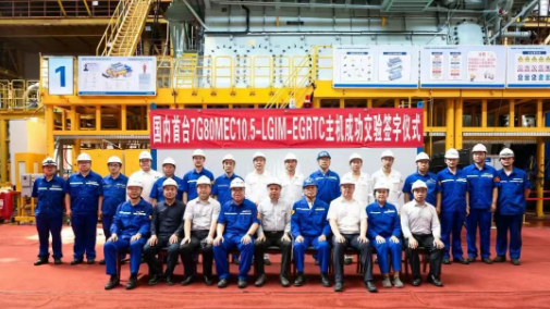 7月4日,國內首臺7G80MEC-LGIM-EGRTC甲醇雙燃料船用低速機交機儀式在中船集團旗下中國動力子公司中船發動機大柴公司成功舉行。該主機將安裝在大連船舶重工集團有限公司為招商輪船所屬海宏輪船(香港)有限公司建造的全球首艘甲醇雙燃料動力智能VLCC(30.6萬噸超大型油輪)上。海宏香港副總經理李偉平、大連造船副總經理何旭、中國船級社大連分社副總經理劉鐵波,大柴公司黨委書記、執行董事李萬勝等出席交機儀式。