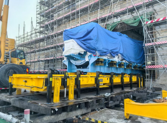 12月18日,由中船陜柴聯合蘇州麥斯威共同攻關、紅沿河核電廠全程參與研發的核電應急柴油發電機組專用轉運平臺,在紅沿河核電站現場投入使用,成功將90 噸重的 18PA6B應急柴油發電機組精準引入柴油機廠房預定位置,標志著中船陜柴在核電專用工具領域實現新的創新突破。