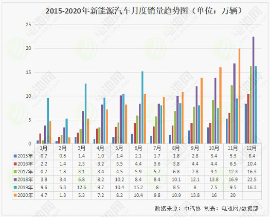 11月,新能源汽車產(chǎn)銷分別完成19.8萬輛和20萬輛,同比分別增長(zhǎng)75.1%和104.9%,其單月產(chǎn)銷第5次刷新了當(dāng)月歷史記錄。11月,我國(guó)動(dòng)力電池裝車量10.6GWh,同比上升68.8%,環(huán)比上升80.9%,增長(zhǎng)幅度較大。