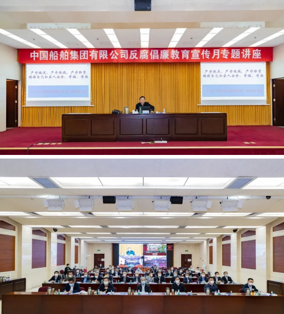 4月7日,中國船舶集團(tuán)有限公司舉辦反腐倡廉教育宣傳月專題講座,邀請最高人民檢察院第八檢察廳專職副書記、二級高級檢察官時磊進(jìn)行專題授課。中國船舶集團(tuán)黨組書記、董事長雷凡培,黨組副書記、總經(jīng)理楊金成,黨組成員、副總經(jīng)理錢建平、孫偉、姜仁鋒、盛紀(jì)綱參加講座。