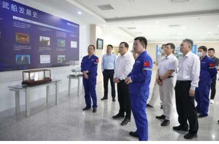 9月7日,中國船舶集團(tuán)黨組副書記、總經(jīng)理楊金成到中國船舶武船集團(tuán)調(diào)研,參觀了展廳,聽取了武船集團(tuán)生產(chǎn)經(jīng)營、重點工作等情況的匯報。