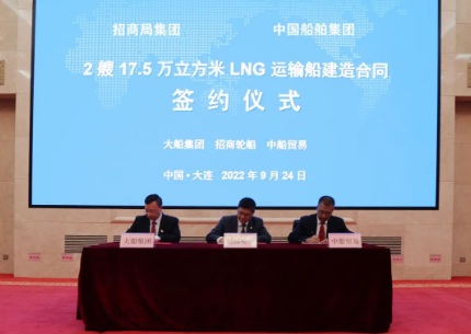 9月24日,中國船舶集團旗下大船集團聯合中船貿易為招商局集團旗下招商輪船建造的30萬噸VLCC “新伊敦”輪正式命名交付。同日,大船集團聯合中船貿易成功承接了招商輪船2艘17.5萬立方米大型LNG運輸船新造項目。中國船舶集團黨組副書記、總經理楊金成,黨組成員、副總經理孫偉,招商局集團黨委書記、董事長繆建民,黨委副書記、總經理胡建華,紀委書記、董事段湘暉,黨委委員、副總經理李百安出席儀式??娊駷樾麓?,楊金成、胡建華在儀式上致辭,段湘暉為新船砍纜。