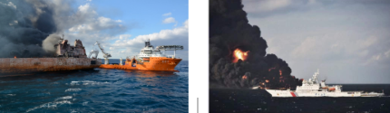 “深潛”號(hào)與“海巡01”船在“桑吉”號(hào)救援現(xiàn)場(chǎng)