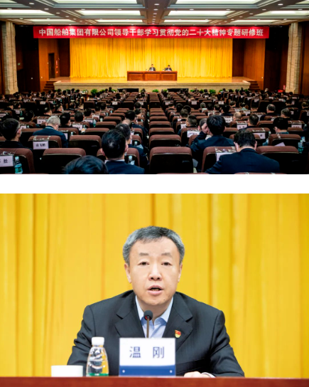 3月6日,中國船舶集團(tuán)有限公司領(lǐng)導(dǎo)干部學(xué)習(xí)貫徹黨的二十大精神專題研修班正式開班。中國船舶集團(tuán)黨組書記、董事長溫剛出席開班式并為全體學(xué)員作了題為《全面學(xué)習(xí)全面把握全面落實(shí)黨的二十大精神,團(tuán)結(jié)奮斗加快建設(shè)世界一流船舶集團(tuán)》的專題講座。集團(tuán)公司黨組副書記、董事、黨校校長杜剛主持開班式。