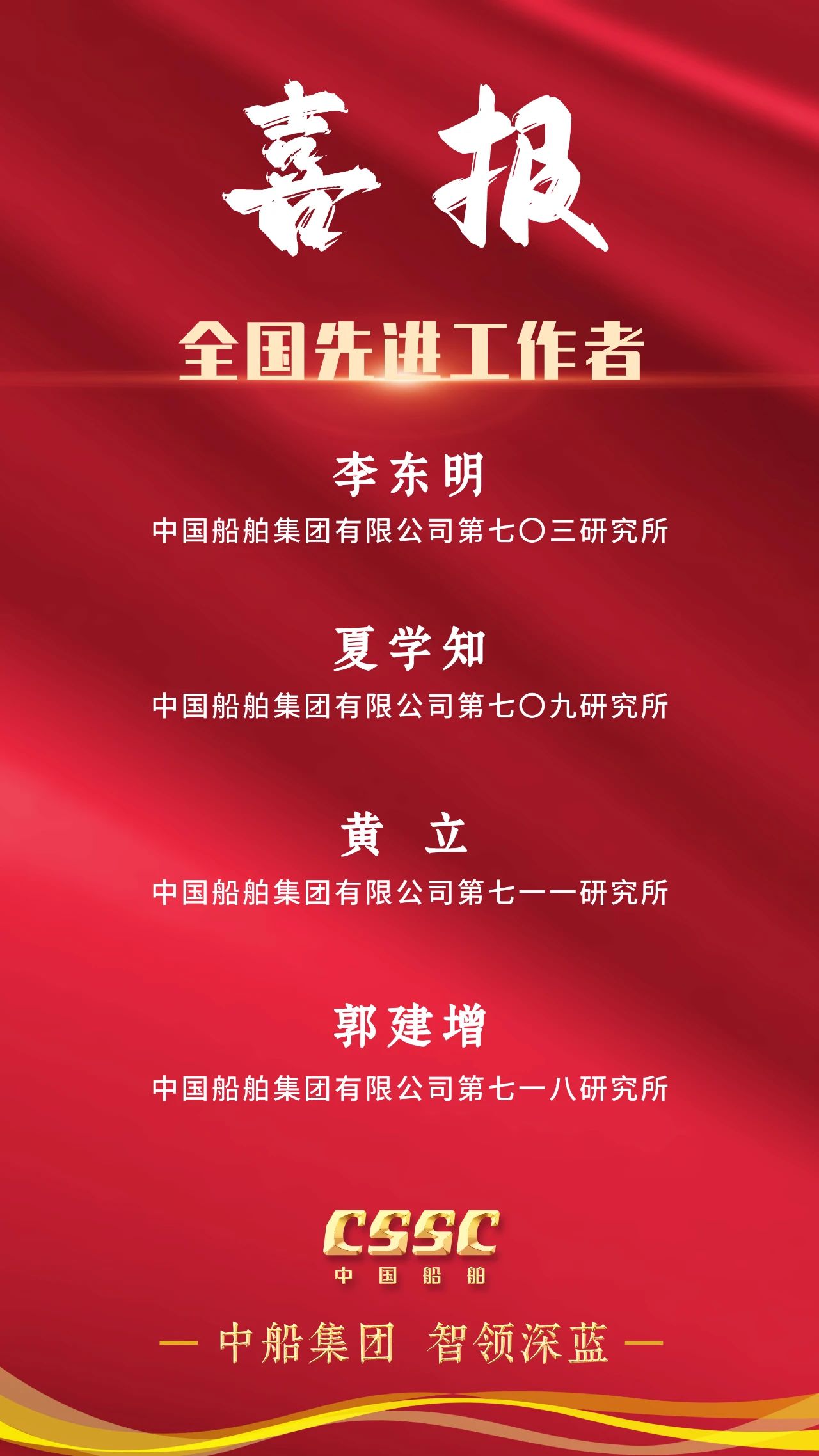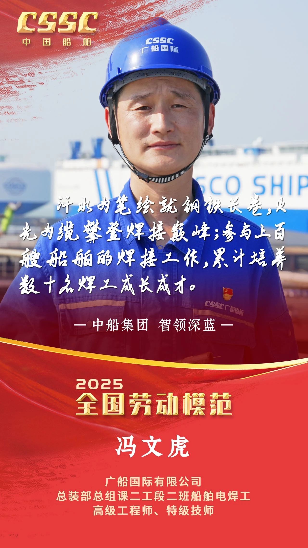 4月28日上午,慶祝中華全國總工會成立100周年暨全國勞動模范和先進工作者表彰大會在人民大會堂隆重舉行。大會宣讀了《中共中央、國務院關于表彰全國勞動模范和先進工作者的決定》。中船集團5人被授予全國勞動模范稱號,4人被授予全國先進工作者稱號。