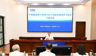 按照黨中央統一部署,根據中國船舶集團有限公司黨組學習教育工作安排,七一前后,中船集團黨組成員以分片區覆蓋、現場+視頻的方式講授深入貫徹中央八項規定精神學習教育專題黨課,圍繞學習習近平總書記關于加強黨的作風建設重要論述的收獲感悟,貫徹落實中央八項規定精神的成效經驗,違反中央八項規定精神的危害,整改整治問題、推動改進作風的實際舉措等方面進行深入交流。